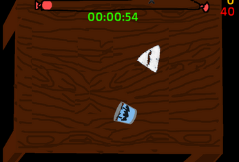 This is a game where you throw pizzas at the enemies (the glasses of water), you are the triangle.